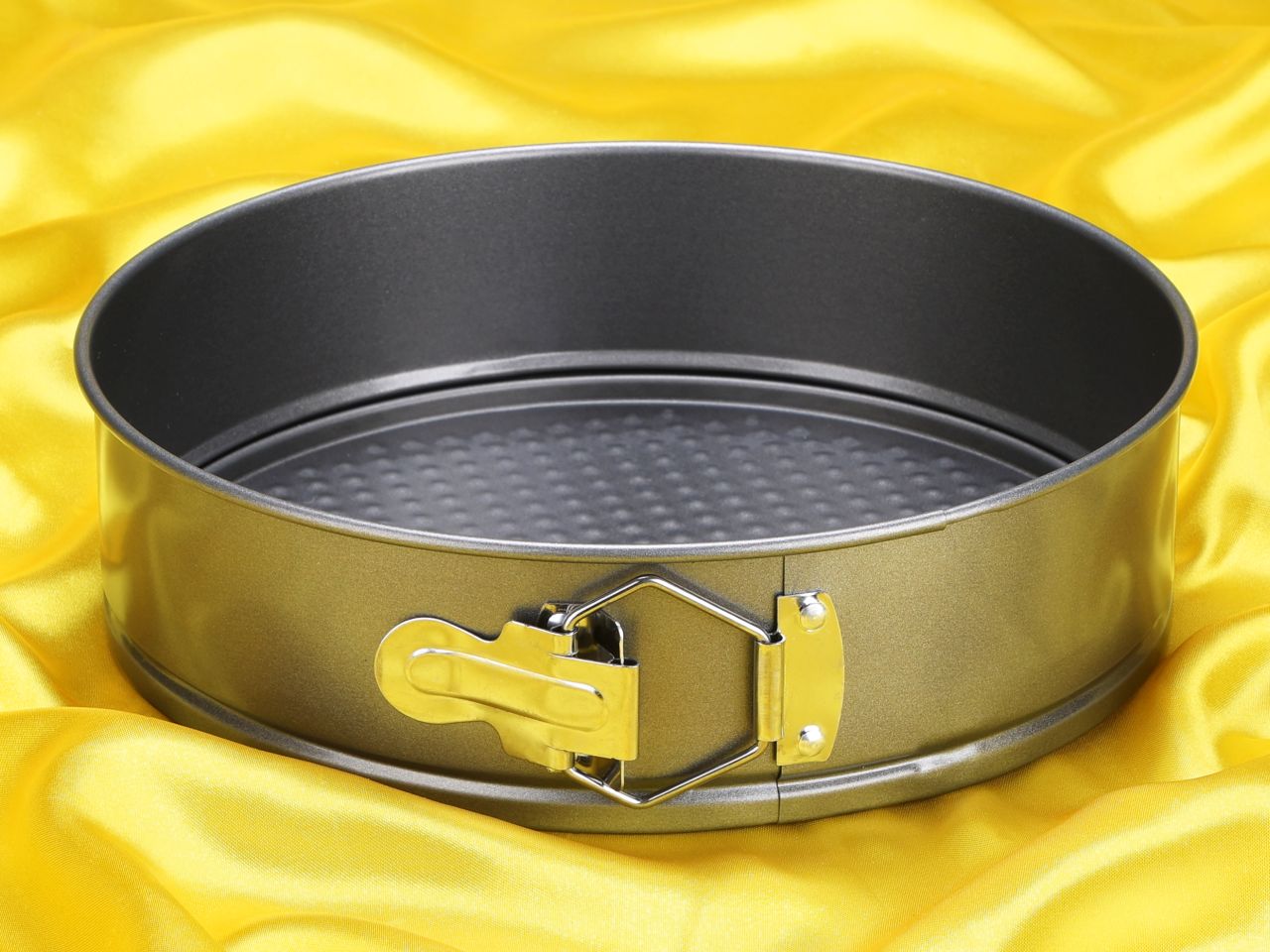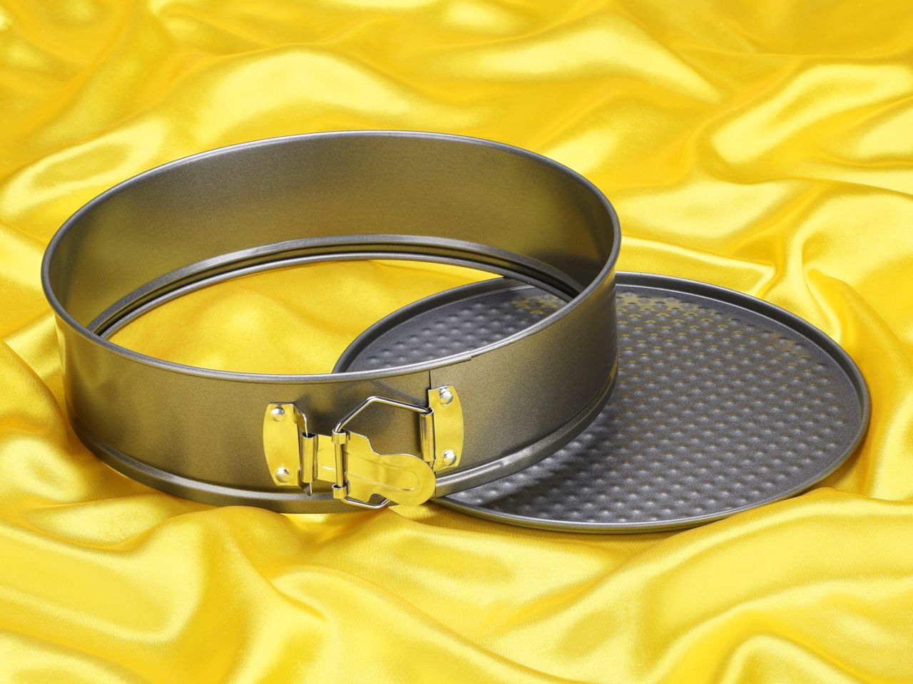 Springform pan with flat bottom.