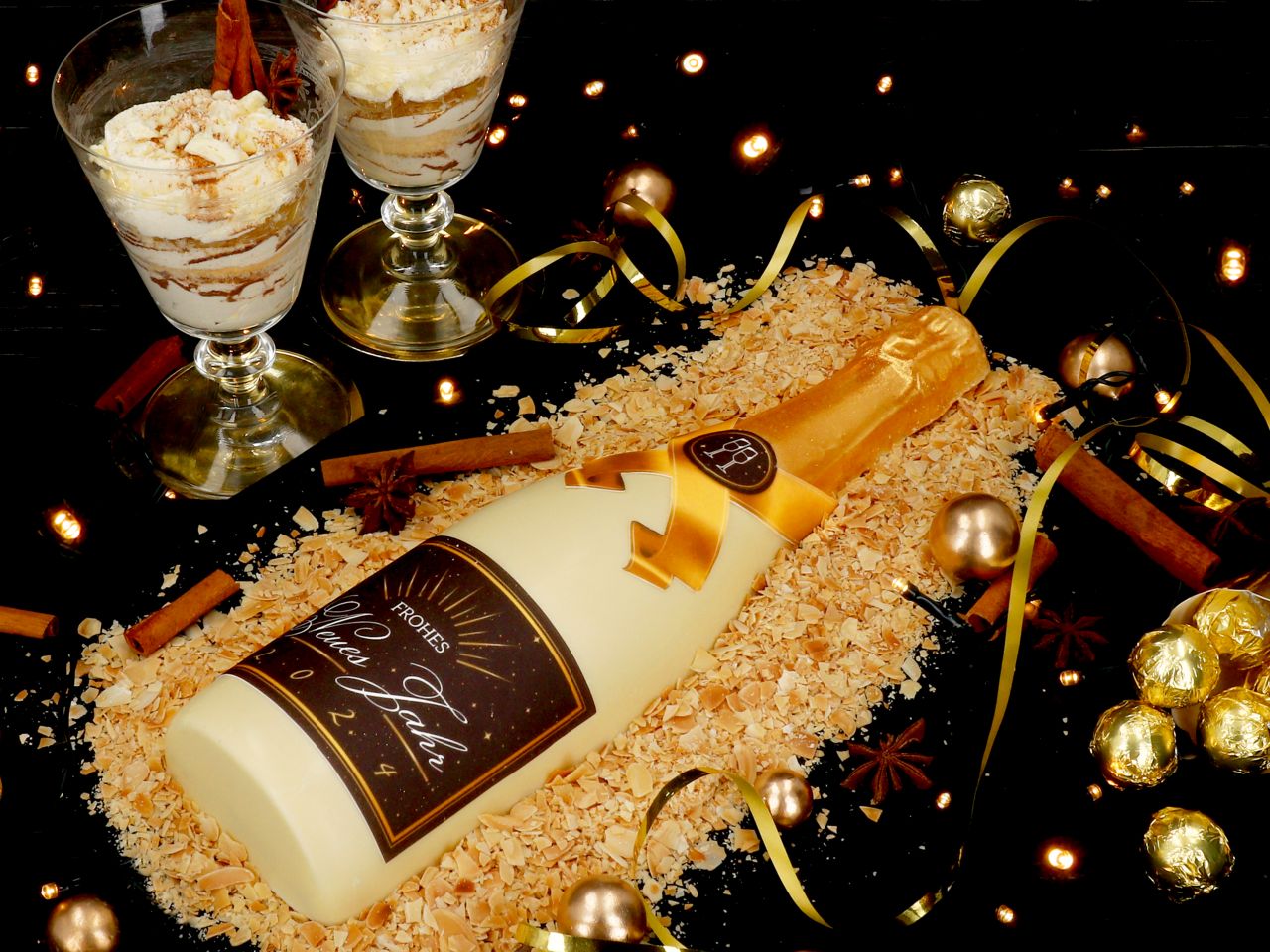 Bedrucktes Fondantpapier für Sektflaschenetiketten passend für eine Motivtorte oder Schokoladenflasche in Originalgröße.