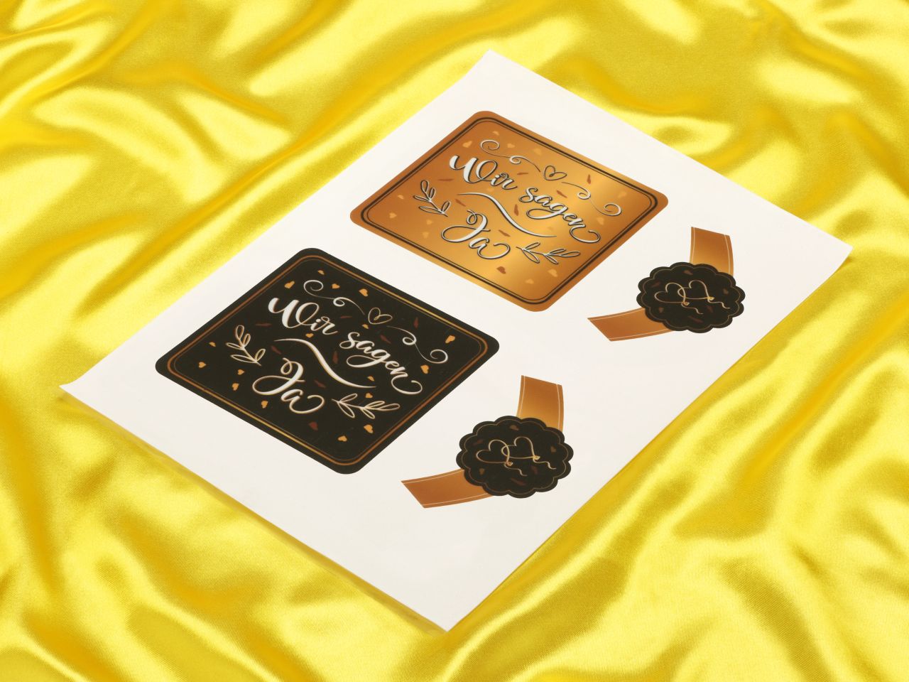 Format: 30x20cm. Etiketten passend für eine Sektflasche.