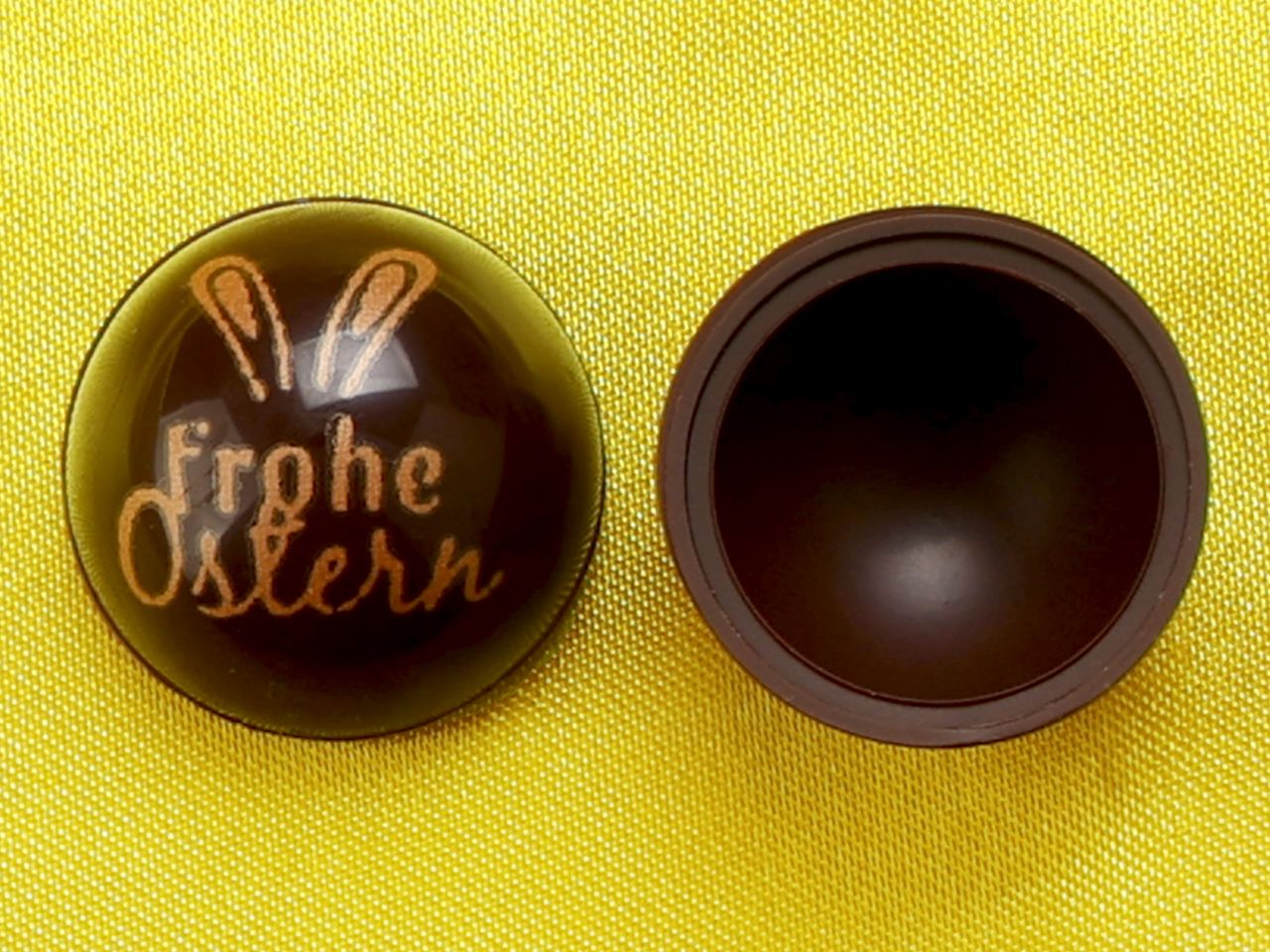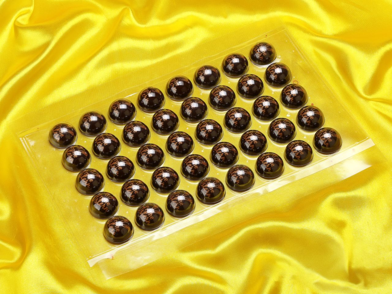 Hemispheres with elaborate printing. You will receive 40 pieces on a foil. Simply fill and use as hemisphere decorations or combine two hemispheres to make a praline.