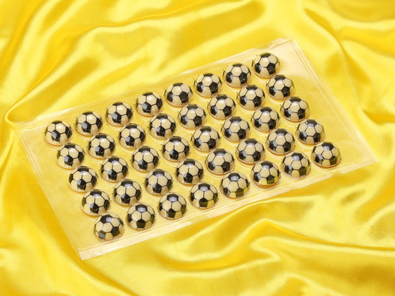 Hemispheres with elaborate printing. You will receive 40 pieces on a foil. Simply fill and use as hemisphere decorations or combine two hemispheres to make a praline.