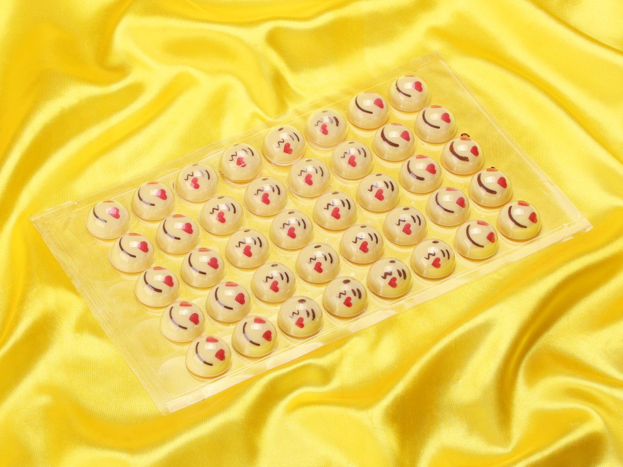 Hemispheres with elaborate printing. You will receive 40 pieces on a foil. Simply fill and use as hemisphere decorations or combine two hemispheres to make a praline.