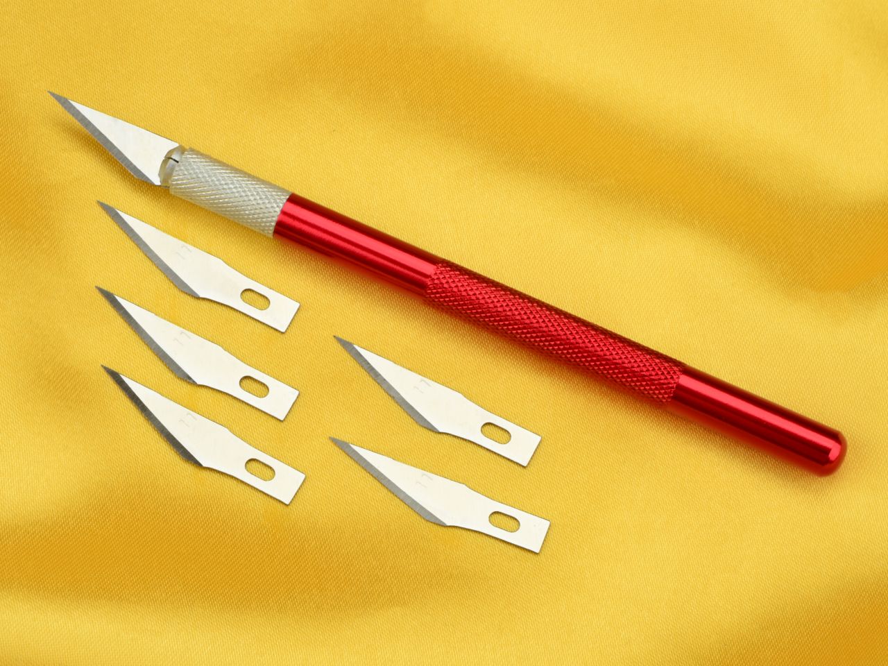Handy scalpel incl. 5 replacement blades. Ideally for modeling and making delicate cuts.