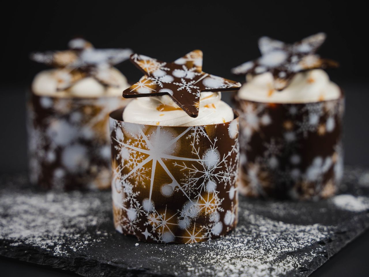Insert cakes or desserts inverted in the Sheet. Strip the Sheet off after freezing. The decorations are now transferred to the cake or dessert.