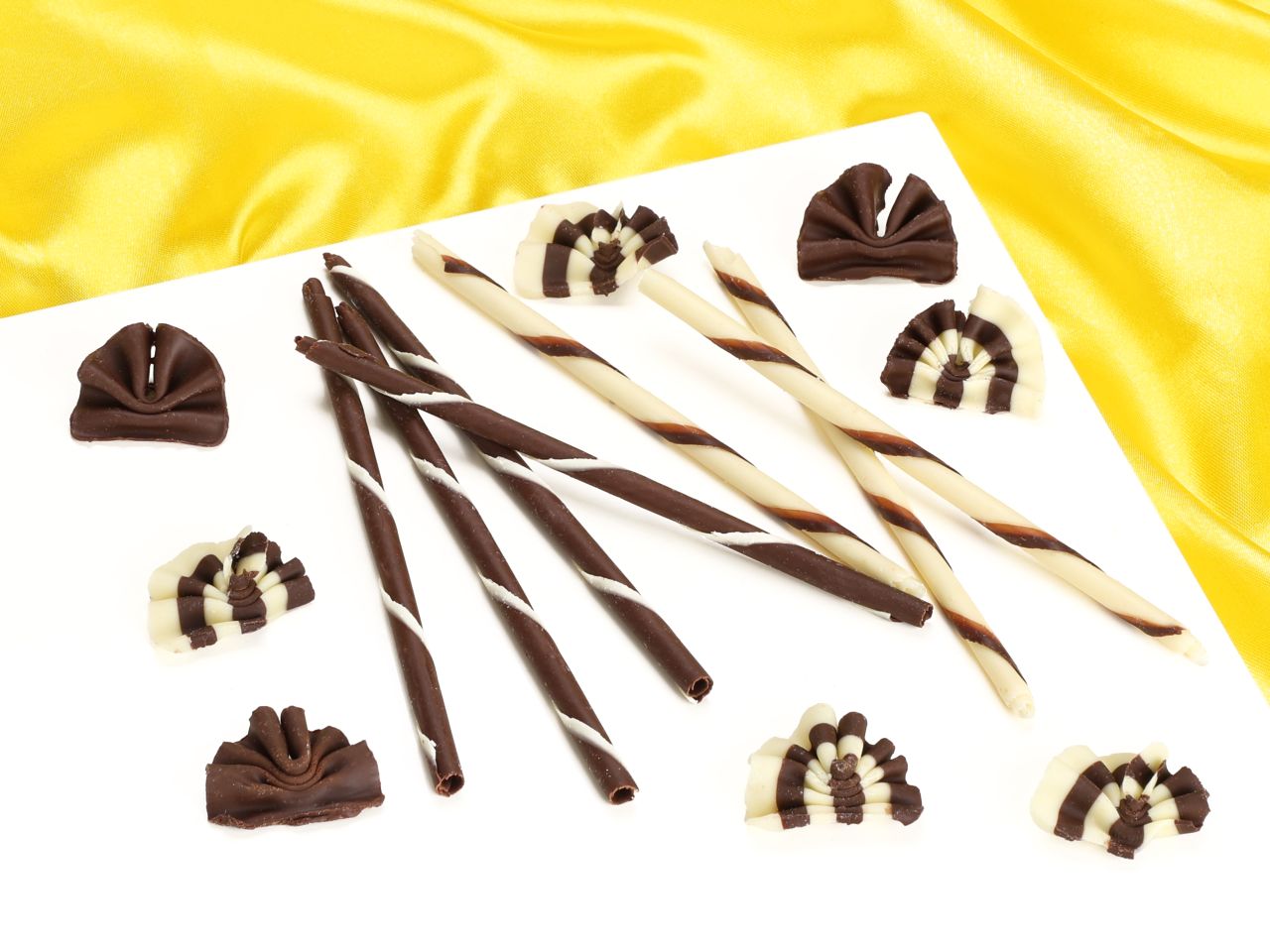 Die Schokoladendekore Selection ist das Dekorationsset, mit dem Sie Ihre süßen Kreationen eindrucksvoll aufwerten. Die hochwertige Schokolade ist zu zarten Schokoladenröllchen und Fächern verarbeitet.