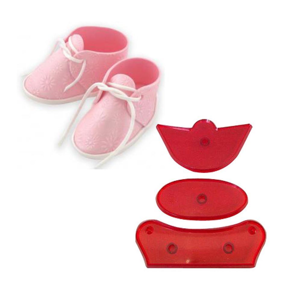 Wunderbare Fondant-Ausstecher von JEM. Mit den Fondantausstechern designen Sie entzückende Babyschuhe für die Verzierung von Torten oder Cupcakes. Das Set besteht aus drei Ausstechern für Fondant, mit deren Hilfe Sie im Handumdrehen einen toll anzuschauenden Babyschuh fertigen!
