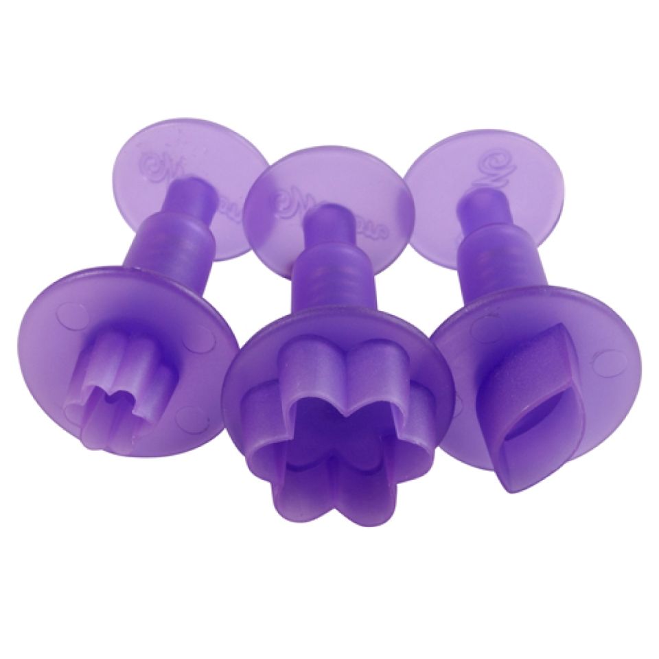 Wundervolle Fondant-Ausstecher von Wilton im Set. Das Set bietet Ihnen drei praktische Ausstecher für Fondant aus Kunststoff. Mithilfe der Ausstechformen können Sie schöne Blätter und Blüten für die Verzierung von Cupcakes zaubern. Die Fondant-Ausstecher von Wilton sind mit Auswerfern versehen. Dadurch lassen sich die fertigen Verzierungen leicht aus den Ausstechformen lösen!