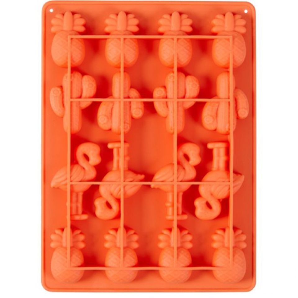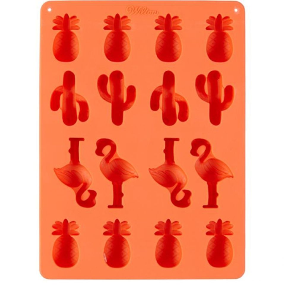 Tolle Wilton Silikonform „Tropical“. Die Silikonform von der bekannten Marke aus den USA eignet sich perfekt für den Sommer. In der hochwertigen Silikonform von Wilton gelingen Ihnen sommerliche Leckereien aus Schokolade oder Teig. So eignet sich die Wilton Silikonform „Tropical“ zum Beispiel wunderbar für die Verwendung mit Candy Melts. Befüllen Sie die Silikonform mit geschmolzenen Candy Melts und kreieren Sie Flamingos, Kakteen oder eine Ananas.
