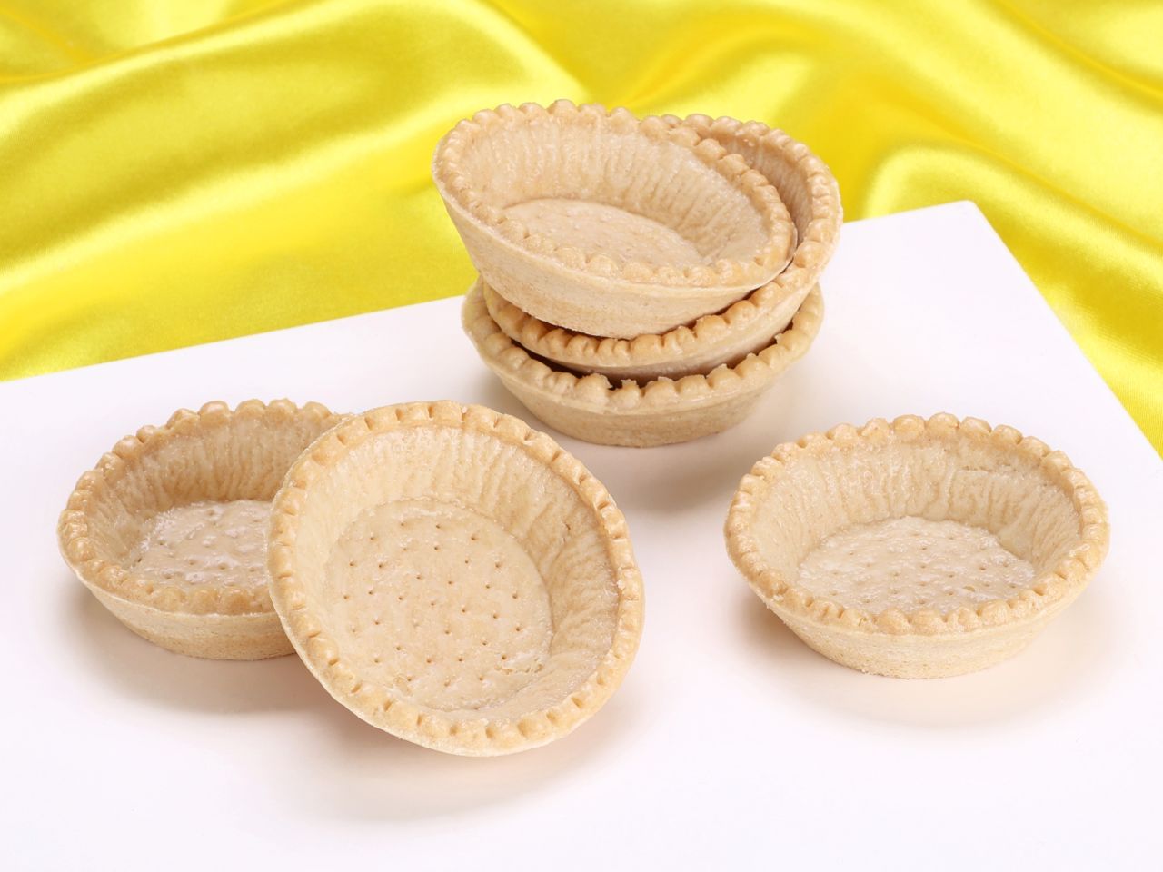 Snack-Tartelettes - bereits fertig gebacken - aus Mürbeteig sind ein schmackhafter Hingucker auf jedem Buffet. Die Tartelettes sind bis an die Randspitzen mit einem dünnen ungehärteten Pflanzenöl ausgestrichen und können daher bis zu 8 Stunden vor dem Verzehr gefüllt werden. Keine Konservierungsstoffe - ein Minimum an Zusatzstoffen - Rohstoffe ohne Gentechnik hergestellt