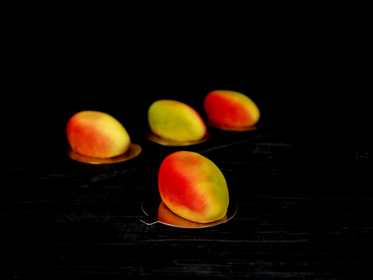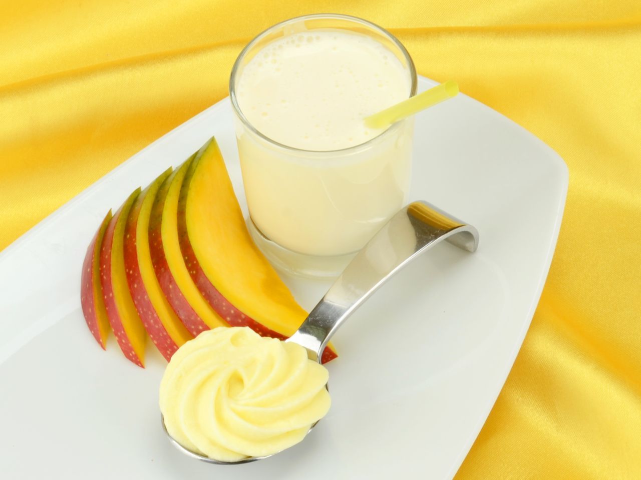 Zucker, BUTTERMILCHPULVER, Gelatine (Rind), Maltodextrin, Glukosesirup, Mango getrocknet, Säuerungsmittel: E 330 (Zitronensäure); Aroma, färbender Kap-Jasmin-Extrakt, Verdickungsmittel: E 401 (Natriumalginat). Kann Spuren von NUSS, MANDEL, MILCH, EI und WEIZEN enthalten.Haltbarkeit: