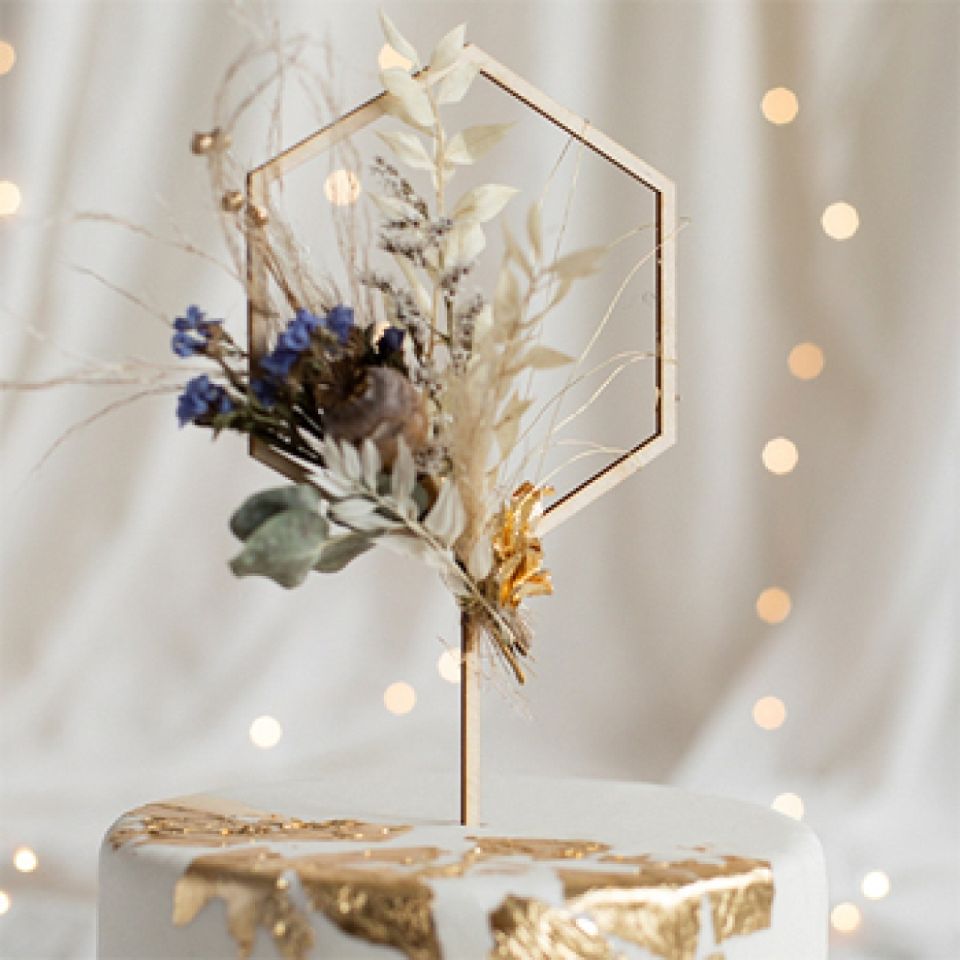 Der Tortentopper aus Holz im Hexagon-Design (24 cm) ist ein stilvoller Blickfang für festliche Torten - ideal für Hochzeiten, Geburtstage oder elegante Events und lässt sich wunderbar mit Blumen oder Zuckerdekor kombinieren.